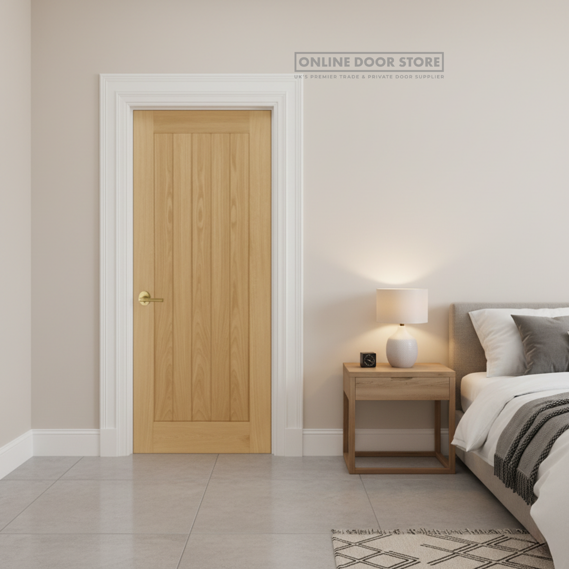 The Aster Cheshire Prefinished Oak Internal Door combines modern design with high-quality materials, featuring five vertical panels crafted from real American white oak veneer. This versatile door is ideal for use in various internal spaces such as dining rooms, living rooms, kitchens, bedrooms, and bathrooms.