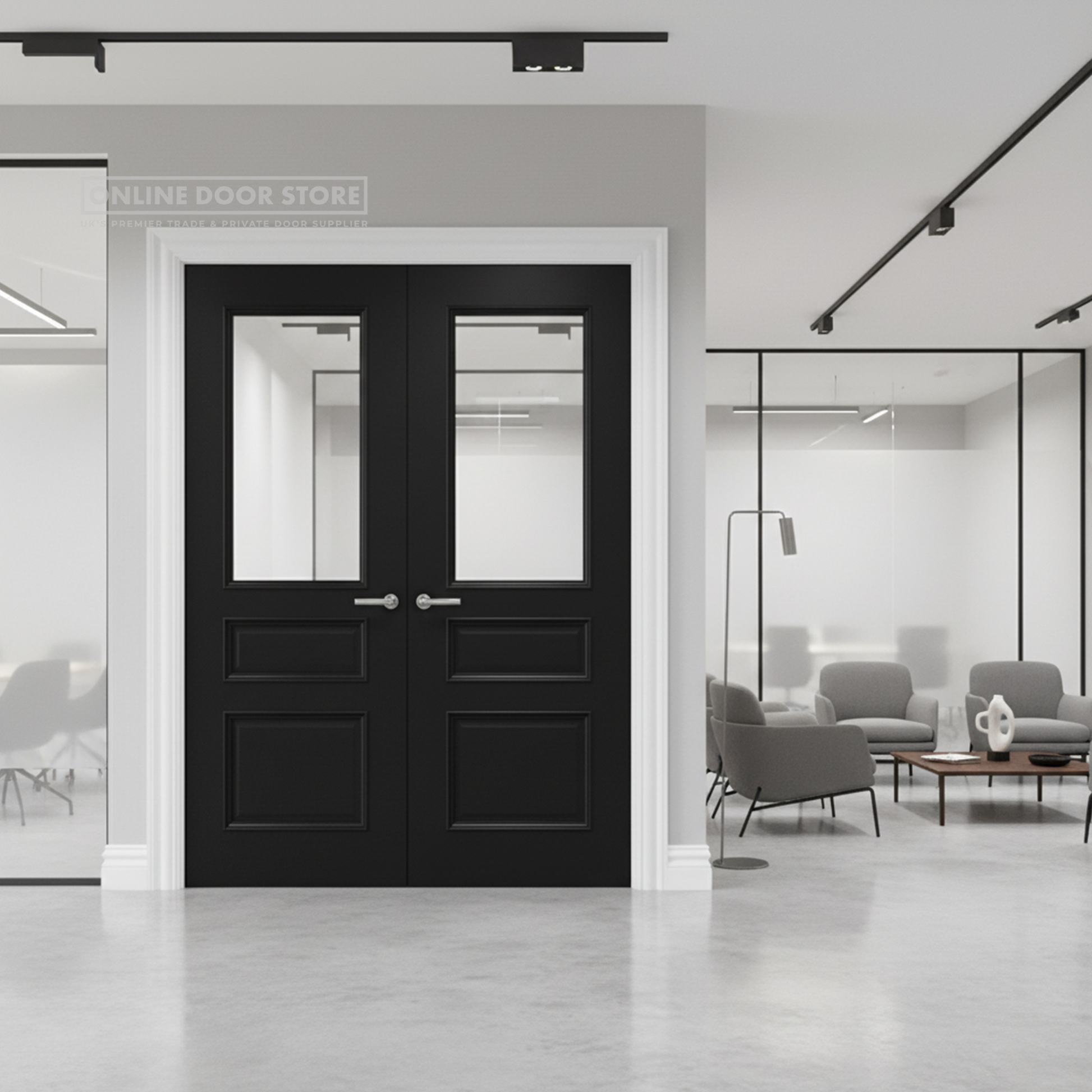 Deanta Windsor Black Prefinished FSC Internal Bevelled Glazed Door