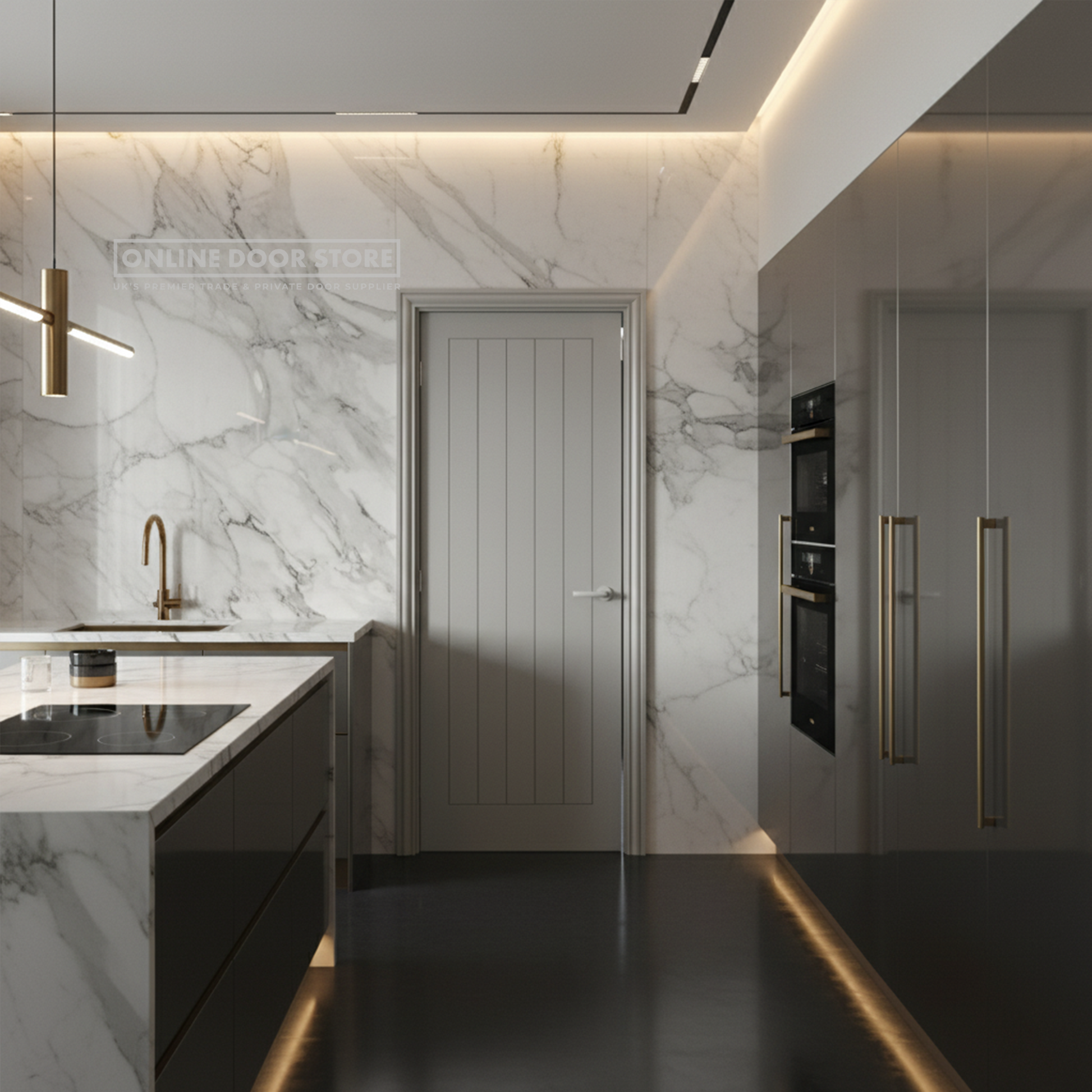 LPD Grey Moulded Textured Vertical 5P Internal Door is a stylish and modern door designed for internal areas such as dining rooms, living rooms, and offices. It features a primed grey finish, a budget-friendly Mexicano style, and is available in multiple sizes, along with options for glazed and fire-rated versions.