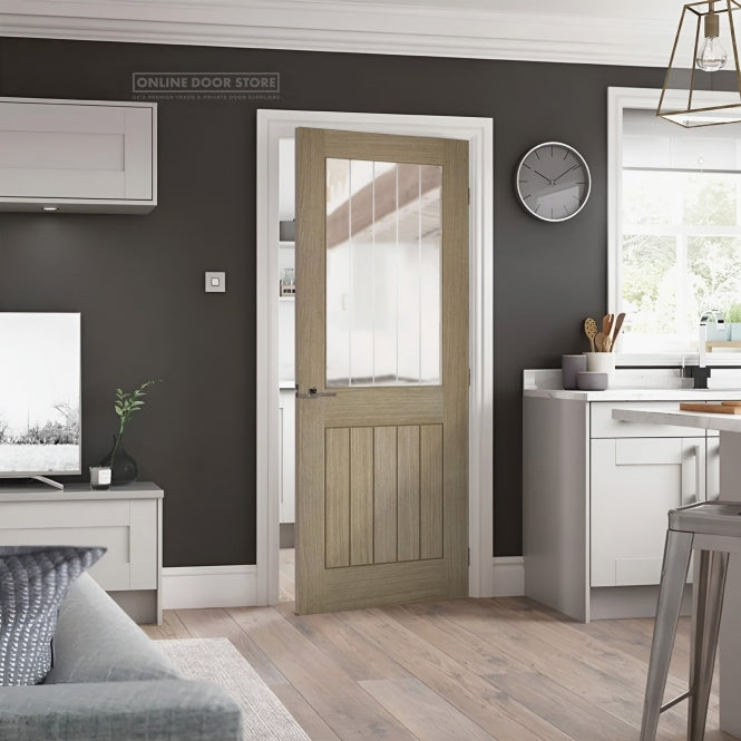 The installation of the LPD Light Grey Belize 1L with Silkscreen Glass (Half Light) Internal Glazed Door is designed to be user-friendly and straightforward. Regarding storage and acclimatisation; your doors must be stored horizontally on a clean, dry, flat and level surface in your home for at least 7 days prior to installation. Please do not store your doors in a freshly plastered room or in an unheated shed or garage. The door is Un-finished meaning it is supplied without any treatment to the veneer. The recommended treatments are varnish, lacquer or Osmo oil. Whatever product you choose make sure to use a fine sandpaper to remove any fine 'hairs' or roughened grain patches before your first coat. Ensure that any new door frame is square and plumb before installation for optimal fit and function. All quality timber doors have a solid lipping around the edge. This allows the doors to be trimmed or planed in order to make up for slight variations in the dimensions of the door frame. Trimming allowances vary from door to door. If you are unsure about fitting, consider seeking assistance from a professional. Please see the table below for the maximum trimming allowances for this door. For hinge installation, we recommend using a minimum of three, 3" (three inch) quality hinges conforming to BS EN 1935. Three hinges will support the weight of the door and prevent warping. It is essential to comply with local fire regulations if you are installing in areas requiring fire-rated doors. To achieve the best results, hiring a professional joiner is advisable to ensure proper installation and finishing. Accessories can be bought separately. Browse our accessories pages for extensive ranges of: See these Blog articles for more tips on measuring for a door, and further guidance on door installation. Please refer to this article for guidance on How to Finish an Un-finished Door.Key Features