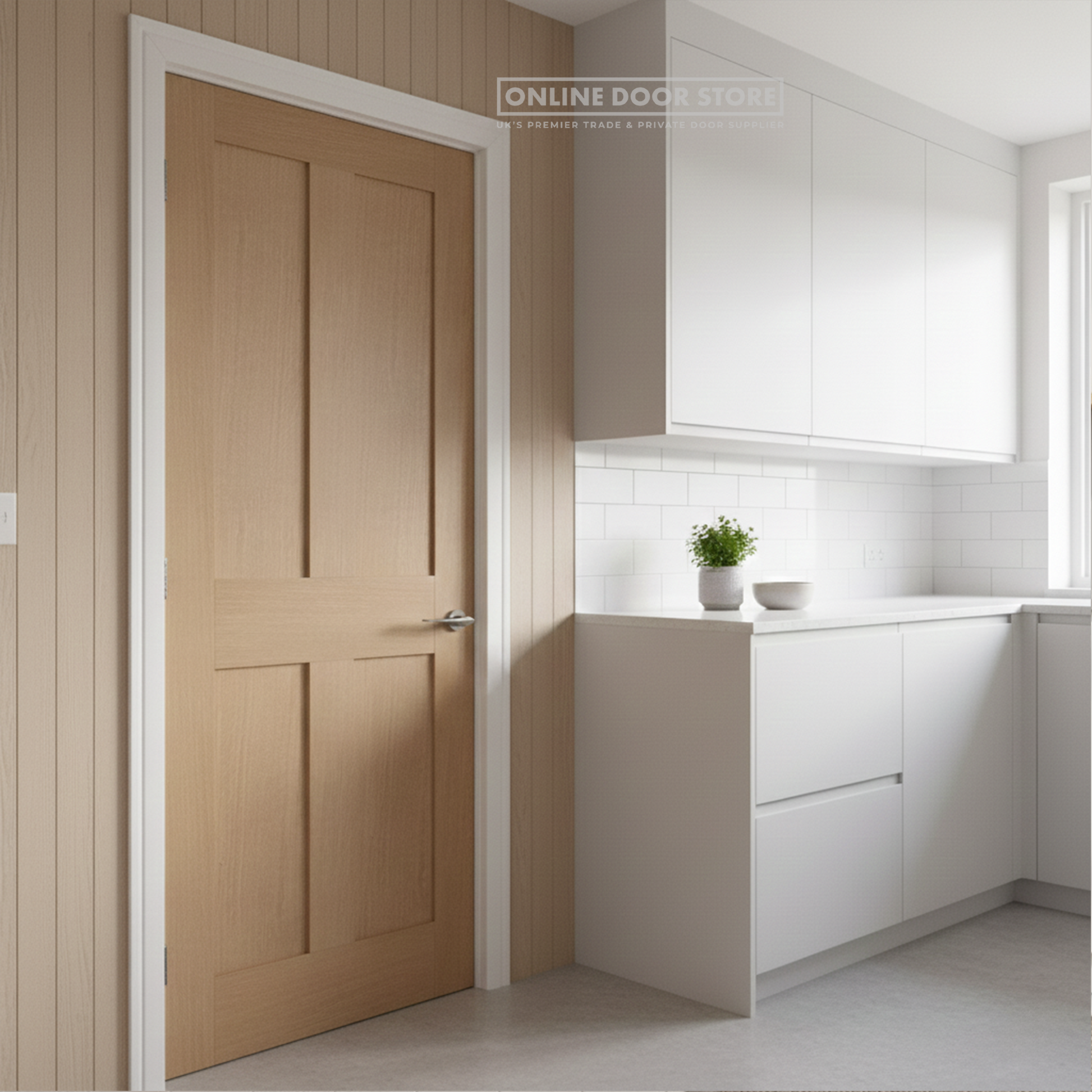 LPD Oak London Internal Door features a classic Victorian 'shaker' style with a four-panel design, made of un-finished oak veneer ideal for all internal areas. This engineered, solid core door can be adjusted on all sides up to 6mm and comes with a manufacturer's 10-year warranty.