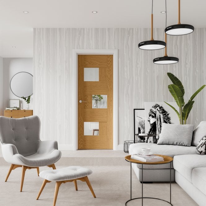 The installation of the XL Joinery Perugia Pre-finished Oak Clear Internal Glazed Door is designed to be user-friendly and straightforward. Regarding storage and acclimatisation; your doors must be stored horizontally on a clean, dry, flat and level surface in your home for at least 7 days prior to installation. Please do not store your doors in a freshly plastered room or in an unheated shed or garage. The door is pre-finished meaning it is ready to hang with no further decoration required. Ensure that any new door frame is square and plumb before installation for optimal fit and function. All quality timber doors have a solid lipping around the edge. This allows the doors to be trimmed or planed in order to make up for slight variations in the dimensions of the door frame. Trimming allowances vary from door to door. If you are unsure about fitting, consider seeking assistance from a professional. Please see the table below for the maximum trimming allowances for this door. For hinge installation, we recommend using a minimum of three, 3" (three inch) quality hinges conforming to BS EN 1935. Three hinges will support the weight of the door and prevent warping. It is essential to comply with local fire regulations if you are installing in areas requiring fire-rated doors. To achieve the best results, hiring a professional joiner is advisable to ensure proper installation and finishing. Accessories can be bought separately. Browse our accessories pages for extensive ranges of: See these Blog articles for more tips on measuring for a door, and further guidance on door installation.Key Features